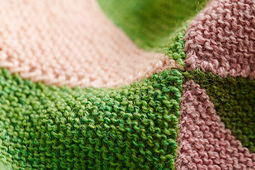 You will work this blanket in one piece, beginning with the bottom left square. You will work in columns, one bias-knit square at a time. When necessary, you will pick up stitches from an adjacent square (or two!) in order to continue seamlessly. Don’t worry, it’s easy and we explain everything!