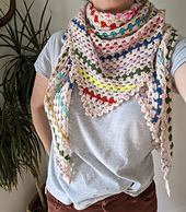 A lightweight drapey shawl of granny clusters.