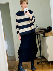 Although the pattern is written for a single colour, we've calculated the yarn requirements for a striped version like the one shown on Melissa (Size 4 on 38" bust).