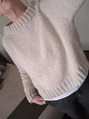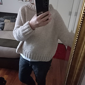 Sunday Morning DK (Ecru) in 'RomCom' held with Halo in 'Glow-getter' For this version, note that the body is knit 1" longer and sleeves are knit 3" longer than specified in pattern.