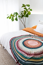 It’s a beautiful way to think of how we collect stories, poems, and songs, and anything else important to us. And it’s a beautiful name for this exuberant throw, with its gardenful of colours and textures. Designed to use a set of 24 fingering minis or scraps, the Anthology Throw would also look incredible in a gradient set.