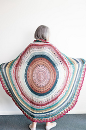 The Anthology Throw is a circular, Pi-inspired project, big and versatile enough to work as a blanket or a generous wrap. Drape it over the couch for epic snuggle sessions or double it up into an extra-cosy shawl. Its sheer scale may seem daunting, but trust me, it’s so easy and comforting to make! Just knit, knit, knit in a circle, with eyelet rounds for increases and interest and a simple chevron lace border.