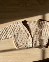 The Baby Aosta Cardigan is an Andalusian stitch top-down raglan cardigan. It is worked back and forth in rows to form the yoke. Once the yoke is finished, you will leave the sleeves to rest and work the body in rows to your desired length. You will then pick up the stitches for the sleeves and work them in the round with some gentle decreases to create a slight taper. I recommend that you finish the body and sleeves with tubular cast-offs, but you can use your preferred method. Finally, you will pick up and knit stitches to form the 1x1 rib button band.
