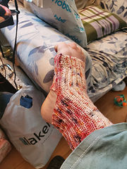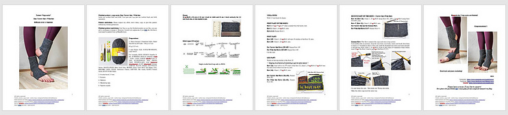 Contains written Row by row pattern of the Yoga socks with photos (aprox. 10).