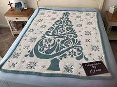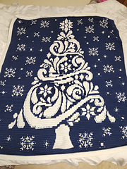 Een Haakpatroon met een sierlijke kerstboom voor een deken in ‘Overlay Mozaïek’ techniek (US Engels en Nederlandse versie).
