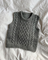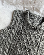 The grey Moby Slipover Baby is knitted in Tynn Peer Gynt by Sandnes Garn in the color Gråmelert [1042].