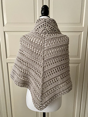 The shawl's stitch pattern is a simple 4-row repeat consisting of dc stitches (worked in various combinations of back loops / both loops) and chain spaces. Each row has 3 dc increases.