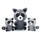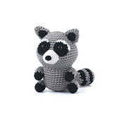 The small raccoon (11 cm) was made with sport weight cotton yarn and a 2.5 mm crochet hook.