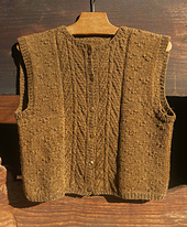 *Cameo* is a cute buttoned waistcoat. Knitted from bottom up, it combines a lovely texture with mesmerizing cables. It can be worn over your favourite shirt or under a bulky cardigan which makes it your best adventure companion. Use wooden rustic buttons or fancy ones, to add a personal touch to the finished piece.