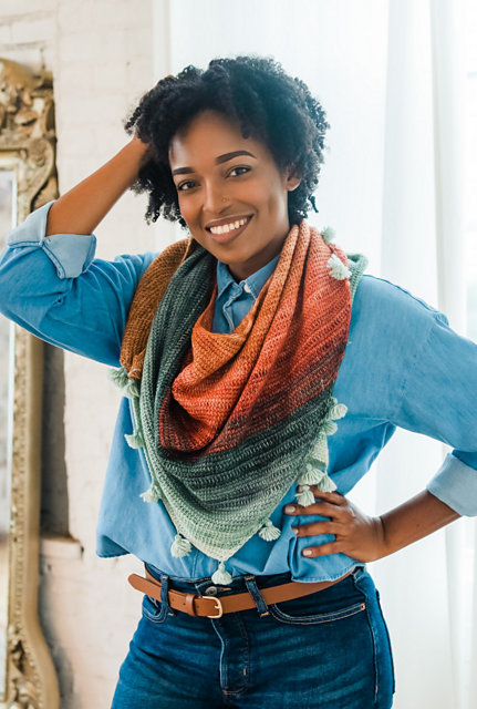 ***Pull those coveted mini skeins from your stash – the perfect project has arrived!*** The Rancher Shawl is a triangle boomerang wrap with curved lines, playful tassels, and an eye-catching stripe pattern. Build your Tunisian crochet skills with this relaxing and approachable wrap.