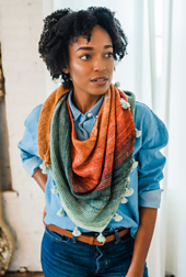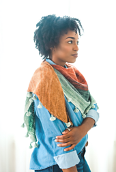 The Rancher Shawl in constructed in a boomerang shape, starting with just five stitches and growing with the help of strategically placed increases. The steady, rhythmic pattern will have you itching to reach the next color. Start your Rancher Shawl with 12 mini skeins in a two-color fade, or build your own stash- busting palette.