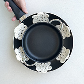 The pan protectors are used to protect your non-stick pans from scratching one another if you stack them in your cupboard. They are made using Breakaway Crochet Method techniques, which means all the little yo-yos are crocheted continuously and joined-as-you-go.