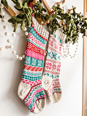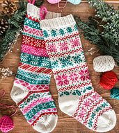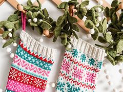 This pattern uses **mix-and-match micro charts** to allow the knitter to design their own holiday stocking. **Modular instructions include flexible options for the upper ribbing, length, and width of the finished stocking.**