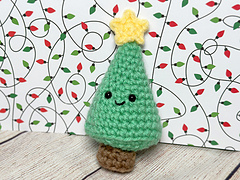 The Tiny Tree is the first pattern in the Mini Amigurumi Advent. It is about 5" tall, made in three pieces, a cone shaped tree piece, a trunk, and a little star.