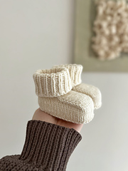 Mini Jord Tøfler er enkle og raske å strikke. De strikkes nedenfra og opp, der du starter med sålen.