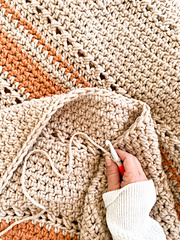 This blanket is worked on the bias. Matching gauge or getting very close, ensures your blanket will be a similar size.