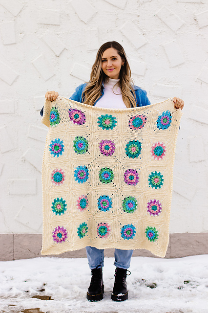 I'm halfway through my first pregnancy and had to add a baby pattern to my 2022 lineup! This sweet little baby blanket is crocheted in 25 identical squares and uses a continuous join-as-you-go method, meaning no seaming is required (tutorial photos included). Named “Flower Market” since picking and choosing the colors for these flowers is much like building your own flower bouquet at a flower market!