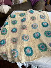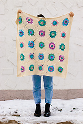 Finished blanket measures approximately 36” (91 cm) square. Each square measures approximately 6” (15 cm) square before assembling and joining the squares.