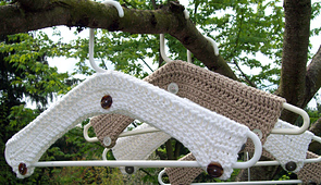 When I was growing up, I remember my Grandmother crocheting around wire hangers. I wrote this updated version using crisp cotton yarn.
