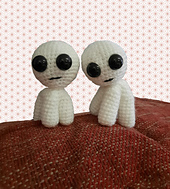 A simple pattern for the tbh creature / yippee meme. There are two versions: the normal version (about 10 cm from head to toe) and a smaller version (about 8 cm from head to toe). This pattern only works with single crochets.