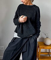 NAiMA Pullover DK is worked seamlessly from the top down. After the collar is done, the neck is shaped with short rows. Then you work the yoke with raglan and radial increases down to sleeve separation. The sleeve stitches are then placed on hold, underarm sts are cast on, and you continue to work the body to the ribbing. After the body is completed, the sleeve sts are picked up again to work the sleeves top down in the round to the end.