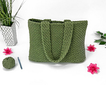 - This pattern uses two strands of yarn held together at the same time, which creates a thick, dense fabric making it the perfect material for your tote bag.