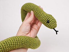 Four original crochet amigurumi snake patterns by June Gilbank.