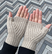 *Fingerless mitts samples used Blue Sky Fibers Woolstok (beige version) and Woolfolk Far (pink version). The mitten sample used Wooldreamers Mota. All samples shown are an Adult S.*