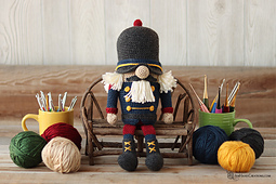 Using hook size E/4 (3.5 mm) the Nutcracker Gnome measures approximately 14.5 inches (37 cm) tall from the bottom of the foot to the top of the knob on the hat, 13.5 (34 cm) without the knob.