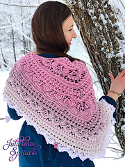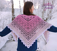 Triangular, openwork shawl that charms with its majestic stitches, grace. Very feminine, sensual, lovely. You will not be bored with her, You will fall in love with her from the very first rows.