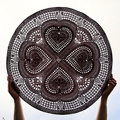 The mandala is created by crocheting four hearts (Part 1) and joining them together (Part 2) before growing them in the round (Parts 2 and 3).
