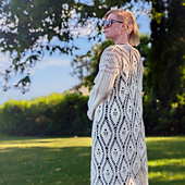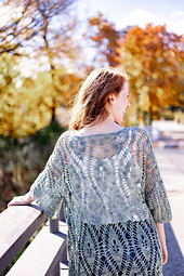 Elegant and airy, this crochet duster is perfect for layering over dresses or a tee shirt and jeans. An all-over leaf lace pattern is made up of mostly double crochet and chain stitches, making it very intuitive to work. Sleeves feature simple shell lace patterns and are worked seamlessly from the armholes. Finished with a trellis-style fringe that adds a nice decorative touch and gives an opportunity to practice another popular craft: macramé.