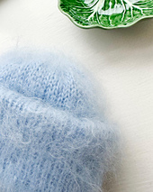 The hat is knitted in a long-haired mohair yarn that as a last touch is brushed with a mohair brush so that the fibres become long and fur-like.