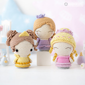 Mini Princesses – the royal-themed set of toys from the ‘Mini Kingdom’ collection. This pattern describes how to create the following five toys: Princess in Pink, Princess in Purple, Princess in Yellow, Princess in Blue and Fairy.