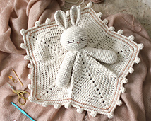 This 12 page PDF pattern with photos is a detailed step by step tutorial to crochet this Sleepy Bunny Lovey.