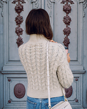 The Wishbone Sweater is a true showstopper piece and I’ve had people literally stop me in the street to ask me where the sweater is from! The sweater is worked top down in an all over cable motif with a dropped shoulder. The elegant texture combined with the high collar makes it a contemporary and easy-to-wear piece, the fit is slightly cropped but can be modified to a longer length if desired by working additional rounds for the body.