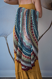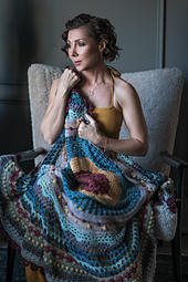 The meditative properties of mandalas are appreciated by cultures and philosophies throughout the world. A mandala's circular form ranges from simple to intricate, inspiring moments of inward and outward reflection. People create mandalas from a variety of materials, from the impermanence of sand to the solidity of carved stone. Multivalence is formed from yarn that is sumptuous in both color and texture. As you crochet each section, each round, each stitch, hone your focus. Be mindful of the feel of the yarn as it slips through your fingers. Note the soft sounds of the hook moving through the yarn. Watch as each movement creates a stitch that flows into another to form unique patterns. Breathe deeply and slowly, pull your tongue away from the roof of your mouth as you unclench your jaw, and drop your shoulders down and back. Know that in this moment, you are creating art, and enjoy the process.