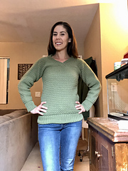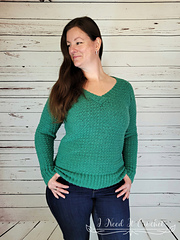 The Up And Down Pullover has it all. The body consists of a simple single crochet/double crochet stitch pattern that keeps you interested and gives a nicely muted texture. The design is easy to customize for length and fit. All of this combined with the v-neck and wide ribbing will give you a flattering sweater you’ll want to wear again and again.