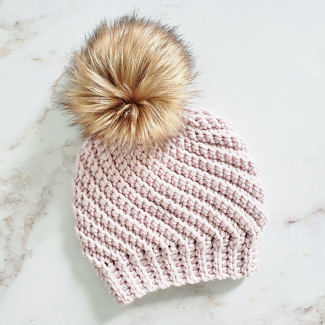 * Approximately 120 yards of a heavy Bulky (#5) weight yarn. Try to choose a yarn that is between 90-120 yards per 100g. Sample beanie uses Premier Basix Chunky in Blush. Some other good choices would be Lion Brand Color Made Easy, Lion Brand Hue + Me, Madelinetosh ASAP or Loops and Threads Charisma.