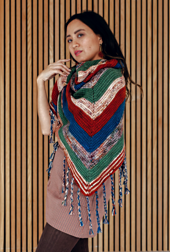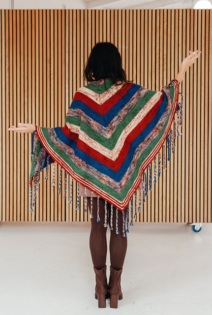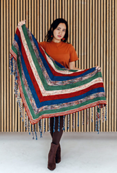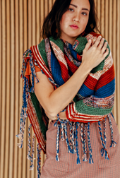 ***Make a serious dent in your stash when you whip up this oversized wrap!*** The Arvada Shawl is a triangle wrap that highlights 5 skeins of DK weight yarn in bold color blocked stripes. After a textured border is added, the leftovers are used for a playful twisted fringe. Build your Tunisian crochet skills with this relaxing stash-buster of a pattern.