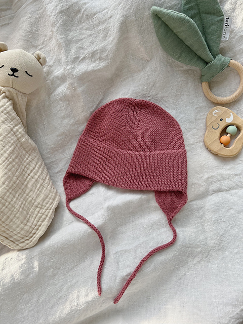 The hat can be decorated with pom-poms or teddy bear ears- the pattern therefore also contains instructions for knitting cute little teddy bear ears. See pictures of hats with teddy bear ears and pom-poms on the last page. If desired, you can of course knit the hat without flaps, but then I would recommend knitting the hat a bit longer than is written in the pattern. See the picture of the hat without ear flaps on the last page.