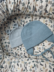 The pattern requires that you are able to knit down the cast-on edge (in the same way as when you knit down a pant lining), since the same result can’t be achieved by sewing it down at the end. It’s also easiest to knit the ear flaps with the magic loop technique, but it’s also totally possible to knit them with five double-pointed needles. You will also need approx. 40 cm of a contrasting yarn.