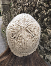 Liberty e’ interamente lavorato con il punto brioche ad uncinetto ed e’ caratterizzato da un motivo a false trecce speculari che si uniscono al centro e culminano in un ulteriore motivo sulla corona.