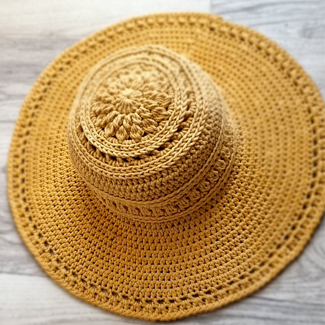 El patrón incluye las indicaciones paso a paso para hacer las 3 versiones del Sombrero Amapola: Bucket Hat, Sombrero de ala media y Sombrero de ala ancha.