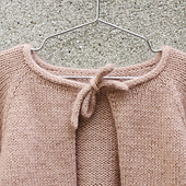 Audrey Cardigan is a soft and sweet cardigan in stockinette stitch with I-cord ties and edges. The fit is cropped and a bit boxy, perfect for over skirts and dresses. It is knit holding 1 strand of Merino + 1 strand of Soft Silk Mohair together throughout.