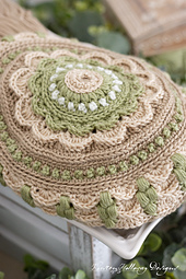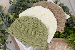 This beanie features many floral elements and can be crocheted with either a solid, or multiple colors of yarn. Its closed textures make it a perfect chemo cap design.