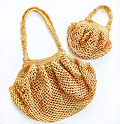 - Bag pattern is written for 2 sizes: small - large. Small: diameter/width - 8 1/2" inch, height (including strap) - 10 1/4" inch. Large; diameter/width - 16 1/2" inch, height (including strap) - 22 1/2" inch.