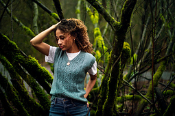 **Construction:** The seamless construction of Rockhound Vest is knit from the top down. You'll start by casting on and shaping each back shoulder separately onto waste yarn using provisional cast-on. The back shoulders are then joined along the back of the shaped neckline and worked flat down to the armholes, incorporating armscye shaping for ease in all the right places.
