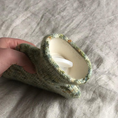 Our solution to this problem is a tiny hot water bottle, only 0.5L, in a little cosy case, which sits nice and snugly in the back of your trousers, under your many layers of sweaters. We all know that hot water bottles need covers to stop you being burnt by them, and we just couldn't find a good pattern for one, so here was born The Shopkeeper's Friend.