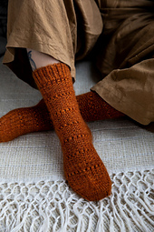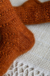 The *Amber* socks are sure to keep your feet toasty on a cold day. They have a lovely rusty colour and fuzzy mohair to add extra warmth.